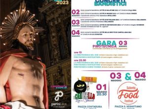 Attesissime invece le serata del 3 e 4 maggio in piazza San Sebastiano protagonista il gusto e il sapore grazie al Salento Food Festival con enogastronomia, prodotti tipici locali ed artigianato, entrambe le serate saranno accompagnate da due eventi di livello: il 3 maggio grande divertimento con “Gli avvocati divorzisti”, lo spettacolo renderà omaggio ai grandi maestri del cantautorato italiano: Carlo Adamo, Ruggero Bondi, Dario Ancona e Francesco Manni faranno scatenare la piazza coinvolgendo il pubblico con il loro repertorio che spazia dal cantautorato raffinato agli scheletri nell'autoradio, tutto da ascoltare ma anche da ballare. Il 4 maggio a Galatone avremo l'onore di ospitare Emanuela Aureli con il suo "one woman show" tra musica ed imitazioni.
