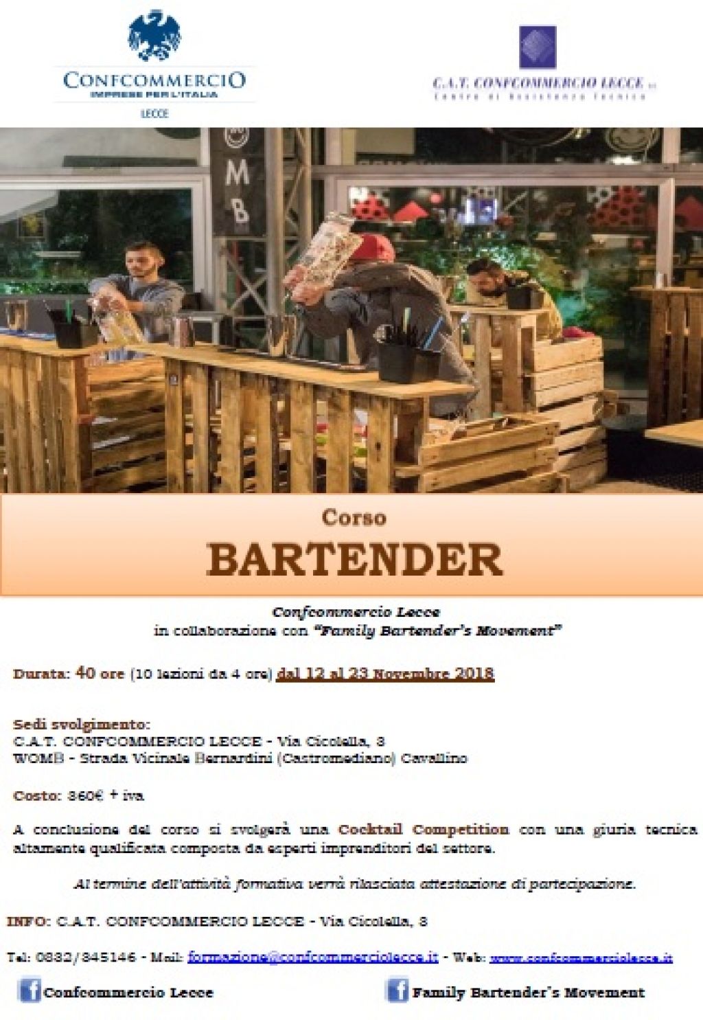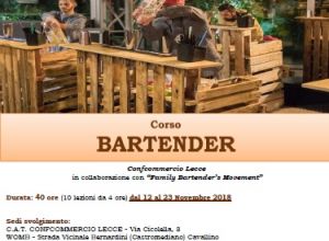 Aperte le iscrizioni per il Corso professionale per BARTENDER organizzato dal CAT Confcommercio Lecce in collaborazione con il “Family Bartender’s Movement”. In allegato le notizie sul corso.