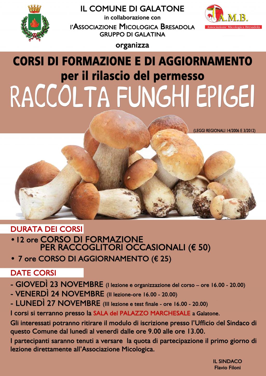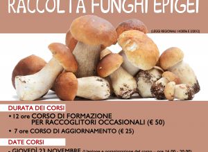 Corsi di formazione e di aggiornamento per il rilascio del permesso raccolta funghi epigei. In allegato il manifesto con le relative notizie sul corso.