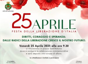 in ottemperanza alla nota n. 0060352 di Sua Eccellenza il Prefetto di Lecce, datata 22/04/2025, e in seguito alla Circolare della Presidenza del Consiglio dei Ministri che dispone cinque giorni di lutto nazionale per la scomparsa del Sommo Pontefice, la celebrazione del 25 Aprile nella nostra Galatone subirà una variazione rispetto al programma originariamente previsto.