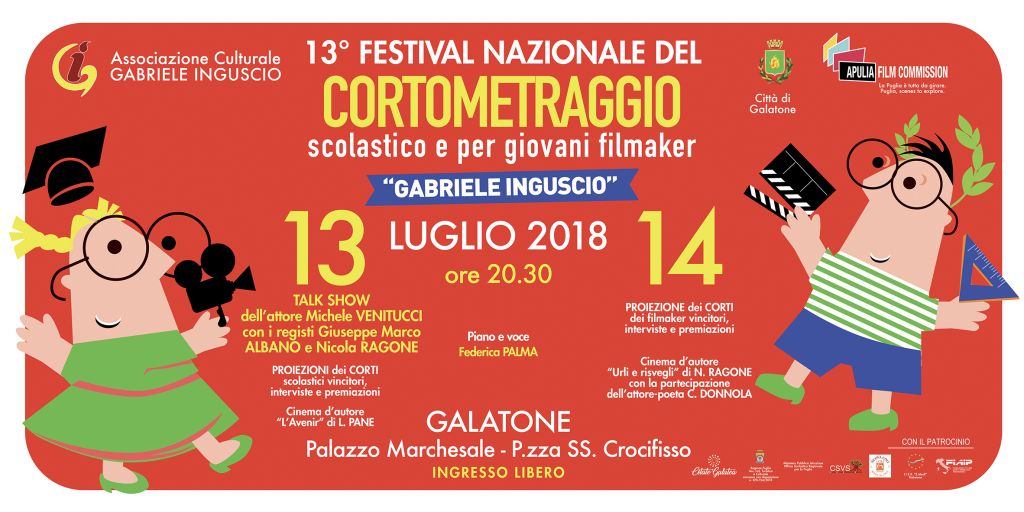 13° Festival Nazionale del Cortometraggio scolastico e per giovani filmaker. Palazzo Marchesale 13 luglio ore 20.30.