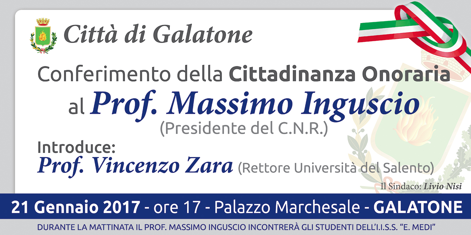 Conferimento della cittadinanza onoraria al Prof. Massimo Inguscio