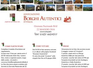 Il regolamento del concorso é scaricabile al seguente indirizzo http://www.borghiautenticiditalia.it/news/giornata-nazionale-borghi-autentici-d%E2%80%99italia-il-22-maggio-una-festa-diffusa
