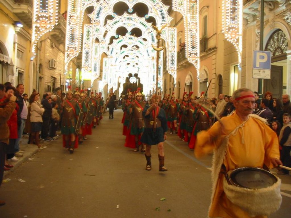 Si sono conclusi con la manifestazione de “lu carru ti sant’Elina” ed il concerto con i Matia Bazar i festeggiamenti in onore del SS.mo Crocifisso della Pietà. Un bilancio positivo sebbene il tempo non è stato per nulla clemente: la processione del 2 maggio è stata spostata a giorno 3 nel pomeriggio; la sfilata storica del carro come da tradizione centenaria dal 4 maggio è slittata al 5 maggio. I festeggiamenti sono stati arricchiti anche per l’evento del “maggioinfiore” giunto alla sua terza edizione che ha visto la partecipazione dell’infiorata “ti lu Panieri” giunta anch’essa alla terza edizione, della mostra fotografica su “Giuseppe Zimbalo architetto del barocco leccese” autore del prospetto della chiesa del Crocifisso in occasione del terzo centenario della sua morte e del concerto di musica sacra “Dalla Madre al Figlio” del coro polifonico “Eratu’s” offerto dalla Provincia di Lecce. Hanno fatto da coronamento agli eventi il convegno su “Storia, tradizioni, fede del popolo galatonese”, la fiera del libro, la mostra di pittura della scuola media A. De Ferrariis. Il tutto legati da splendide luminarie. In allegato le foto che hanno caratterizzato la festa ed il “Maggioinfiore”.