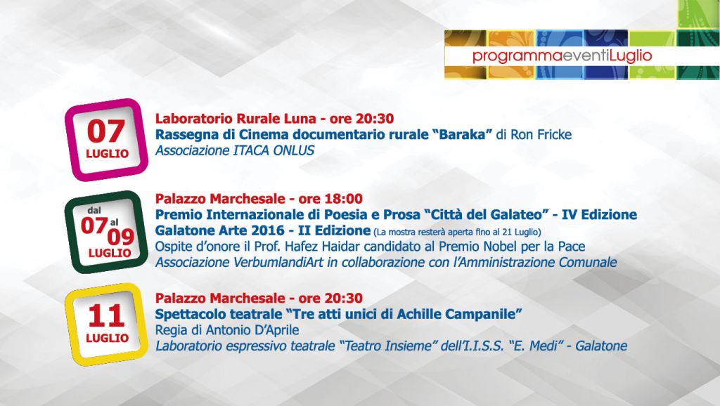 TEATRO | CULTURA | MOSTRE | SPETTACOLO | MUSICA | CINEMA | SPORT