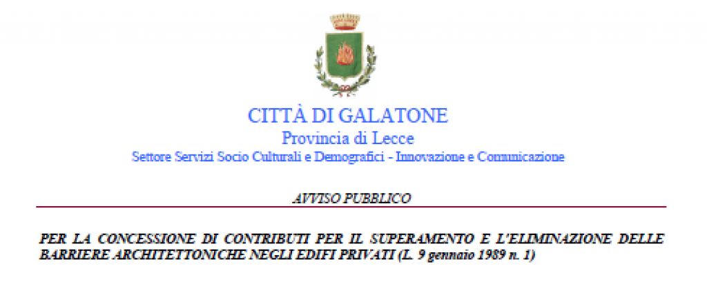 AVVISO PUBBLICO PER LA CONCESSIONE DI CONTRIBUTI PER IL SUPERAMENTO E L'ELIMINAZIONE DELLE BARRIERE ARCHITETTONICHE NEGLI EDIFI PRIVATI