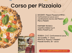 Il corso organizzato da MPGS – MAESTRI PIZZAIOLI GOURMET SALENTINI di Confcommercio Lecce ha una durata di n. 40 ore complessive ed è riservato ad un numero massimo di 20 partecipanti.